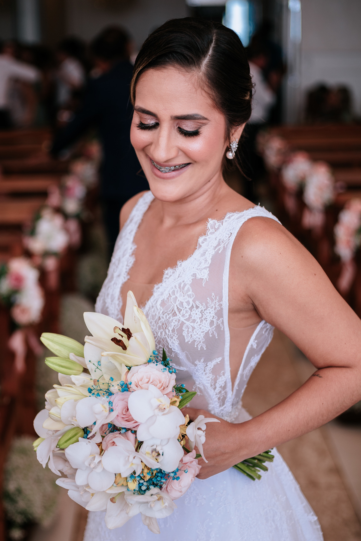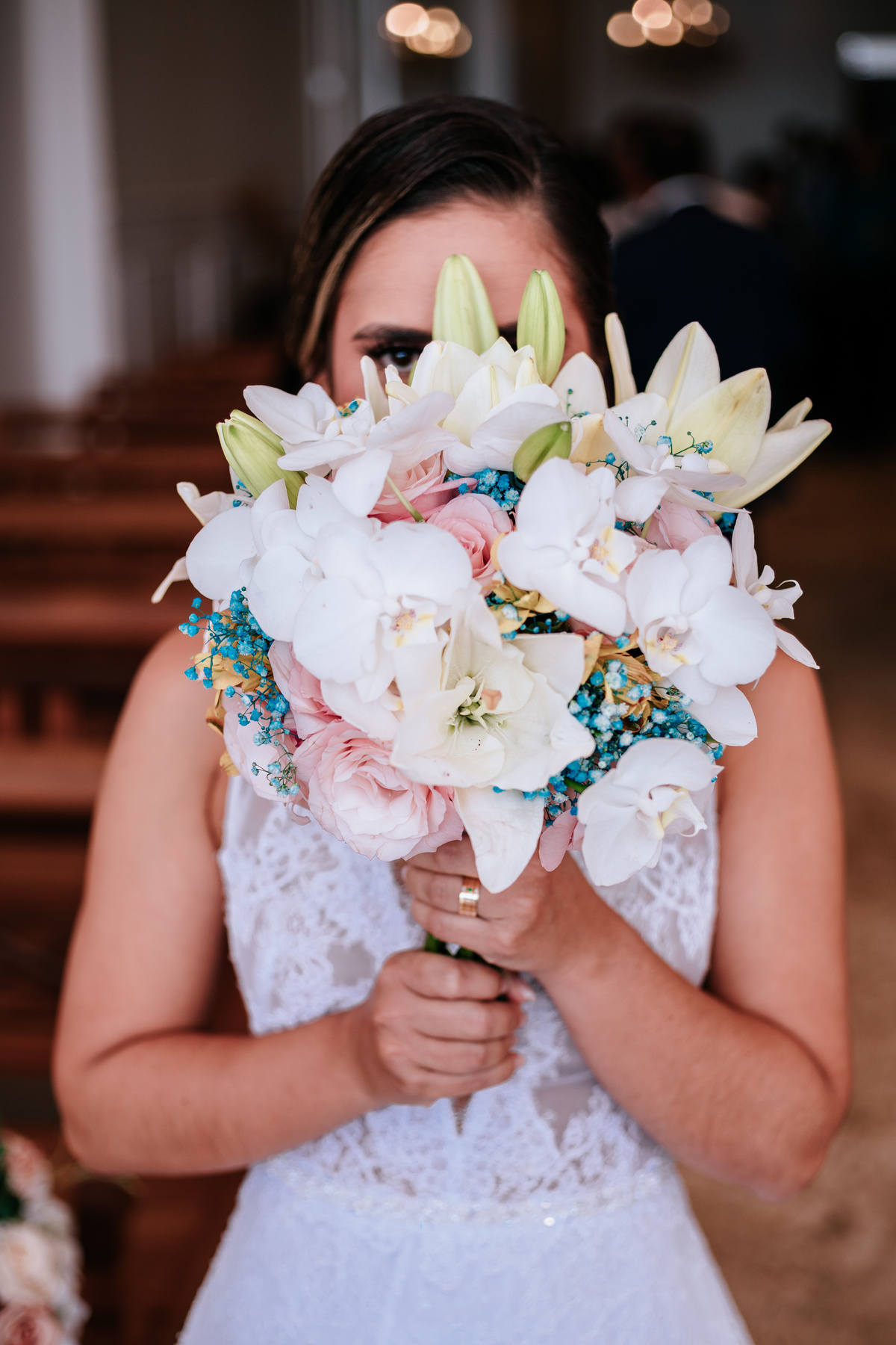 Desde o making of da noiva, onde a mãe ajudou a fechar o vestido, até a entrada das alianças, onde o filho do noivo teve um papel muito importante, cada momento foi cuidadosamente registrado. Também tive a oportunidade de capturar a chamada de vídeo do irmão da noiva que está morando em outro país, foi um momento muito emocionante.